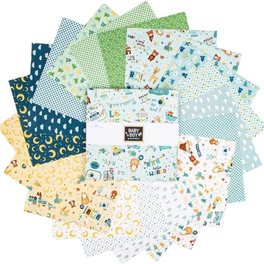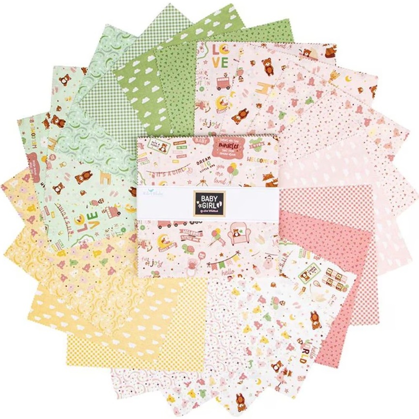 Snuggly Squares is made with 1 Layer Cake and 2 yards of Background fabric and that is it!!! You even get the binding fabric out of the Layer Cake ;) So ya, It is truly simply to just grab a Stack and get cutting and piecing!! And I just love that Lori Whitlock made both a Baby Girl and a Baby Boy fabric collection. I can't tell you how much I love making matching quilts in boy and girl fabrics!! And these Baby Girl and Baby Boy Collections are just so perfect!!! The colors are so soft and the prints are just adorable, perfect for a sweet little one.